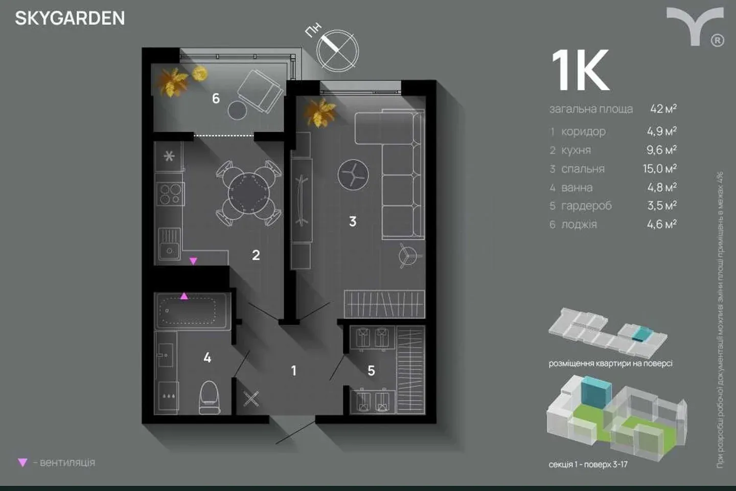 Пропонуємо до продажу однокімнатну квартиру в сучасному житловому комплексі Skygard.