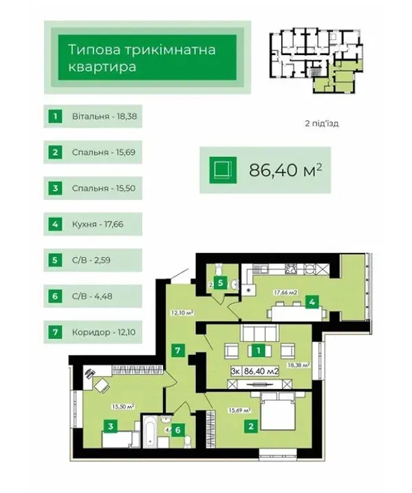 Загальна площа: 86 м²